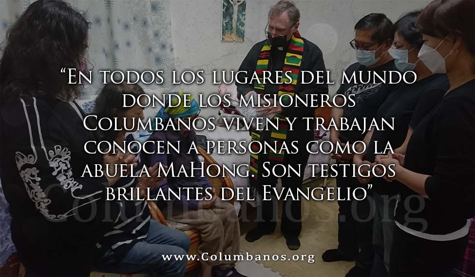 Celebramos el Sacramento de la Unción de los Enfermos, y le di la Santa Comunión. Como es costumbre en nuestro lugar, durante la unción nos reunimos alrededor de MaHong y, unidos, impusimos las manos en silencio mientras Vesu oraba por ella en su lengua tribal. Siempre es un momento poderoso y la fe de MaHong en Jesús estuvo poderosamente presente y brilló fuera de ella. Un testimonio tan claro del Evangelio y del Reino de Dios tiene su influencia más profunda en las personas de alrededor, y Vesu, su sobrino, también se conmovió visiblemente. En todos los lugares del mundo donde los misioneros Columbanos viven y trabajan conocen a personas como la abuela MaHong. Son testigos brillantes del Evangelio y nos inspiran a continuar en la Misión, todos los días a seguir a Jesús dondequiera que la vida nos guíe.
