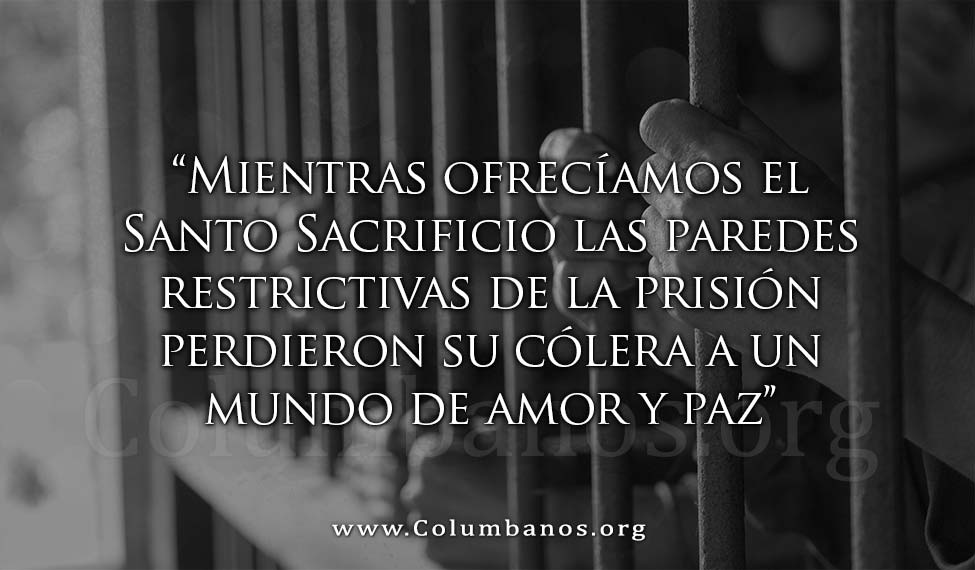 Mientras ofrecíamos el Santo Sacrificio las paredes restrictivas de la prisión perdieron su cólera a un mundo de amor y paz una nueva resolución hecha posible por la humilde sierva de Dios la Hermana Columbana Joan Sawyer.