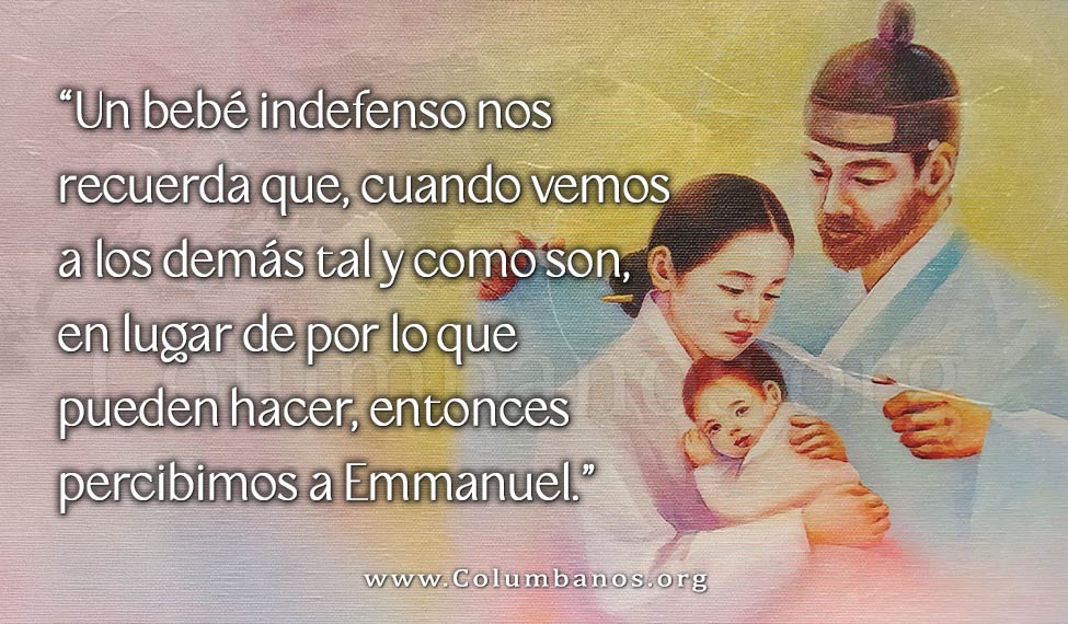 Al igual que un abuelo frágil y olvidadizo, un bebé indefenso nos recuerda que, cuando vemos a los demás tal y como son, en lugar de por lo que pueden hacer, entonces percibimos a Emmanuel, la presencia misteriosa y consoladora de Dios entre nosotros en medio del caos de nuestro mundo.