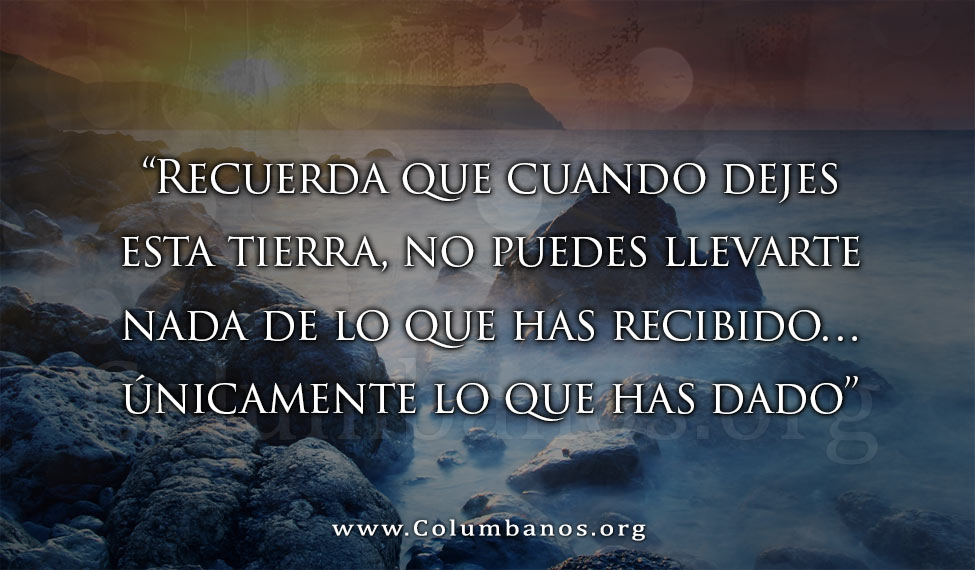 “Mantener un ojo claro hacia el fin de la vida. No olvides tu propósito y tu destino como criatura de Dios. Lo que eres en su presencia es lo que eres y nada más. Recuerda que cuando dejes esta tierra, no puedes llevarte nada de lo que has recibido… únicamente lo que has dado; un corazón plenamente enriquecido por el servicio honesto, el amor, el sacrificio, y el valor.”